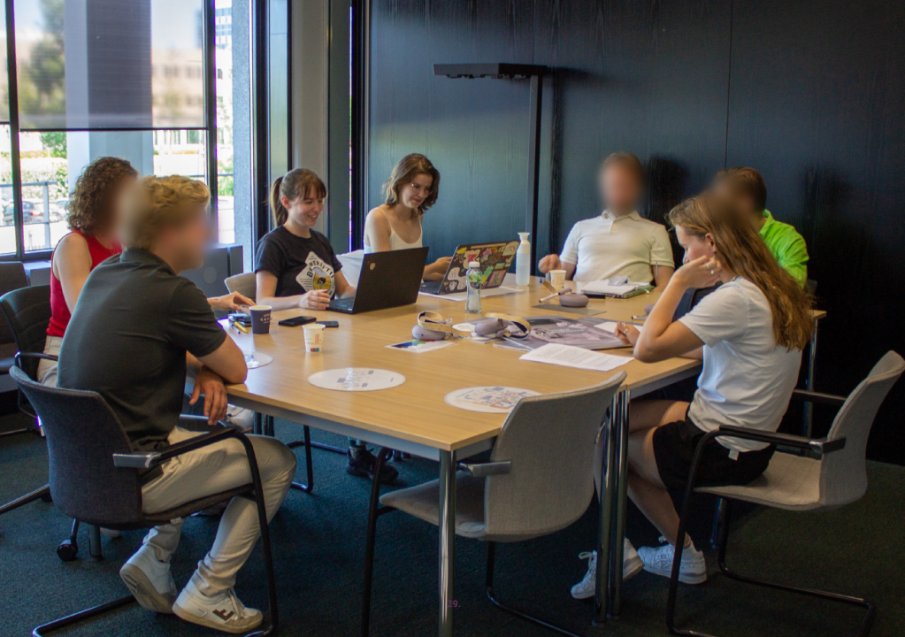 During this project, I developed the most in the expertise areas User & Society (U&S), Creativity & Aesthetics (C&A), and Business & Entrepreneurship (B&E). In regard to C&A, I learned that if you start from material explorations, you can discover aspects and qualities of concepts that would not be revealed when you are just thinking about them. In the beginning of the project, we mostly held meetings and talked for hours. As the project progressed, embodiment started to play a bigger role, and we got out of our heads and into our bodies [15]. This helped us discover, for example, that feeling each other through materials helps foster a sense of connectedness. My understanding of the concept of situatedness also grew. If I want to understand where people are coming from, I need to recognize that their experiences, values, and needs are shaped by their social, cultural, and physical contexts [16]. This is highly relevant for me as a designer, because I want to design for a sense of belonging and community, and these concepts differ depending on where, who, and by whom they are experienced. Lastly, my understanding of B&E grew, because we had the chance to validate our concept with De Toekomst van Brabant at the provincial government building of Brabant [17].