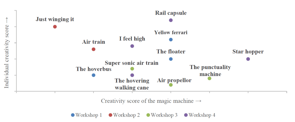 The results showed no clear relationship between the outcomes of the workshop and the individual creativity of the participants, but they do suggest that the rapid ideation and unconstrained nature of the Magic Machines workshop have a positive influence on the students’ creative process.